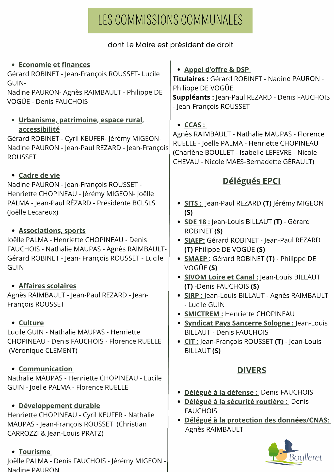 - Agnès Raimbault, 2ème Adjointe - Cyril Keufer, conseiller municipal - Jean-Paul Rézard, conseiller municipal - Philippe de Vogüé, conseiller municipal - Lucile Guin, 4ème adjointe - Florence Ruellé, conseillère municipale - Nathalie Maupas, conseillère municipale.